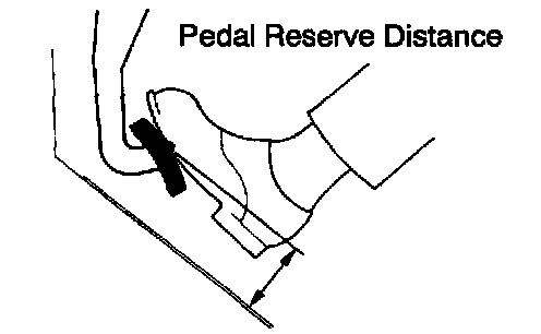 With engine running, depress the pedal and measure the pedal reserve distance, as shown.