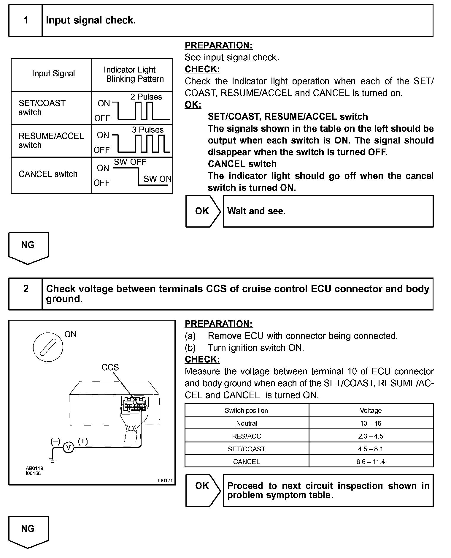 This circuit carries the SET/COAST, RESUME/ACCEL and CANCEL signals (each voltage) to the ECU.