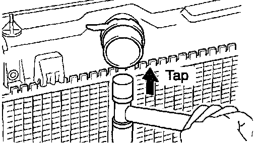 Lightly tap the bracket of the radiator (or radiator inlet or outlet) with a soft-faced hammer, and remove the tank and the O-ring.