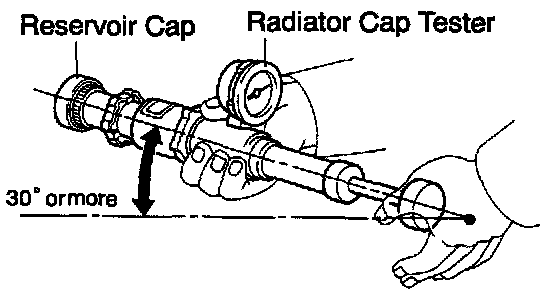 - When performing steps (a) and (b), keep the radiator cap tester at an angle of over 30° above the horizontal.