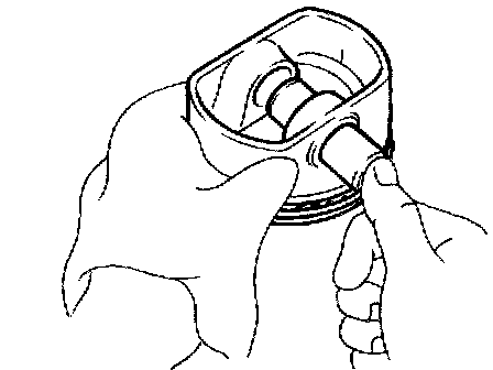 e. Check the piston pin fit at normal room temperature. Coat the piston pin with engine oil, and push it into the connecting rod with your thumb.