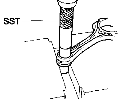 d. Using a pin hole grinder, hone the bushing to obtain the standard specified clearance between the bushing and piston pin.