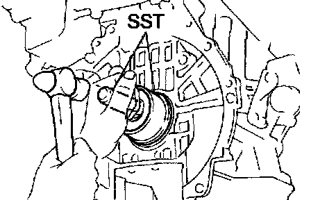 d. Using SST and a hammer, tap in the oil seal until its surface is flush with the rear oil seal retainer edge.