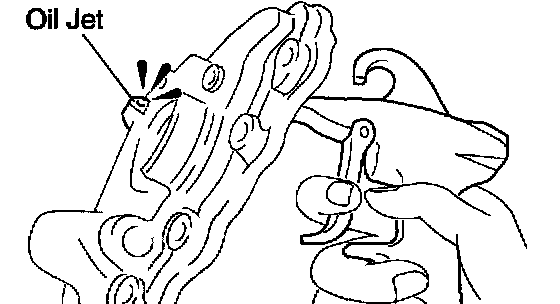 Check the oil jet for damage or clogging. If necessary, replace the oil pump assembly.