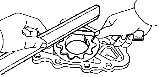 Using a feeler gauge, measure the clearance between the drive and driven rotor tips.