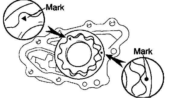 a. Place the drive and driven rotors into pump body with the marks facing the pump body cover side.
