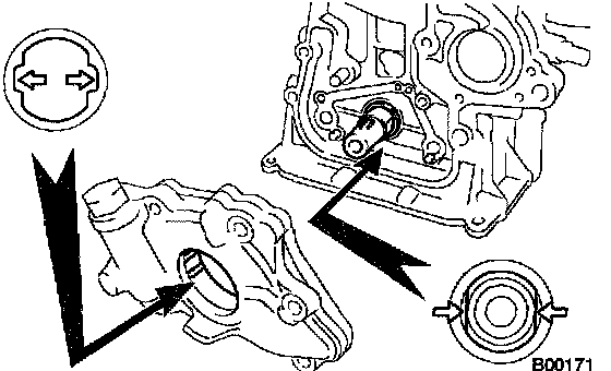 b. Engage the spline teeth of the oil pump drive rotor with the large teeth of the crankshaft, and slide the oil pump.