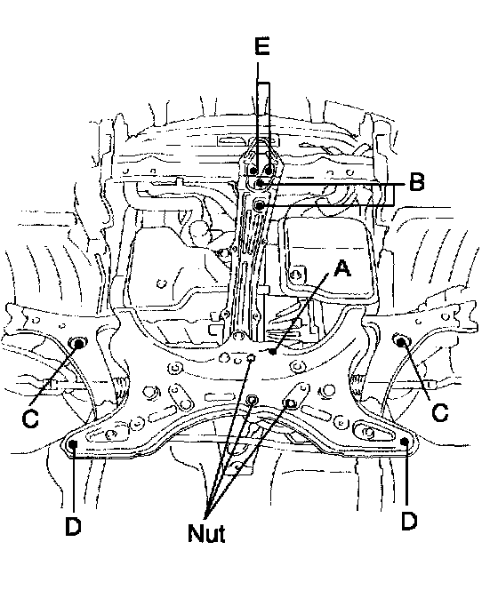 a. Install the suspension member with the 9 bolts and 3 nuts.