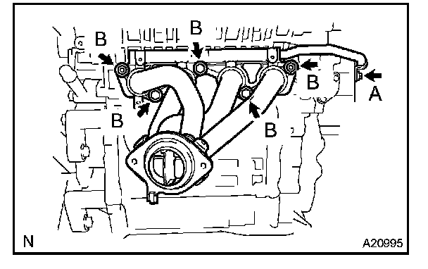 a. Install the gasket and exhaust manifold with the 2 nuts and 3 bolts.