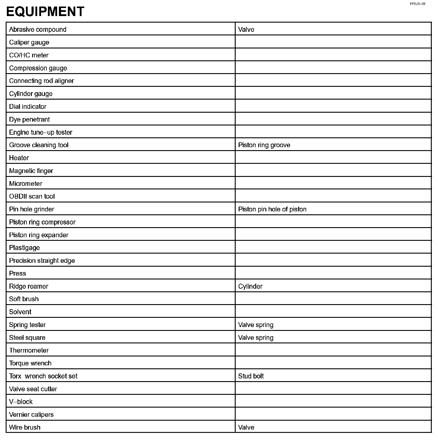 Engine: Tools and Equipment