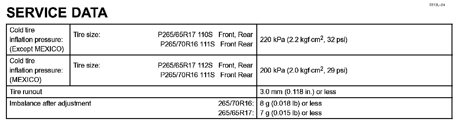 Tire & Wheel - Service Data: