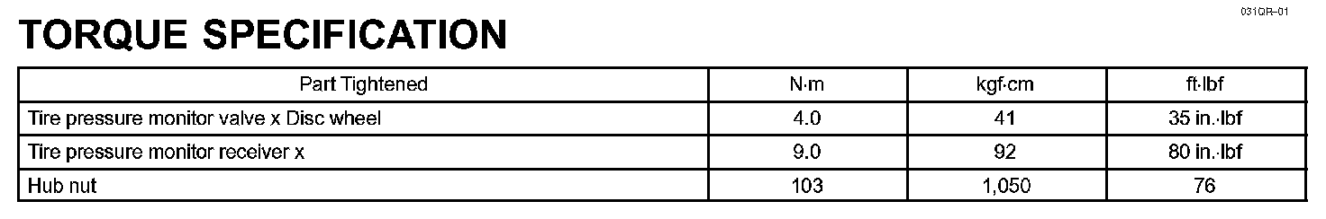 Tire & Wheel - Torque Specification: