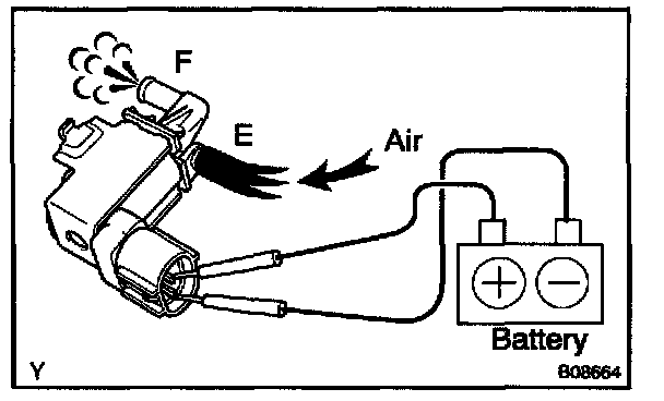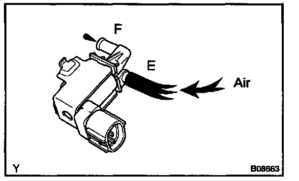 a. Check that air does not flow from ports E to F.