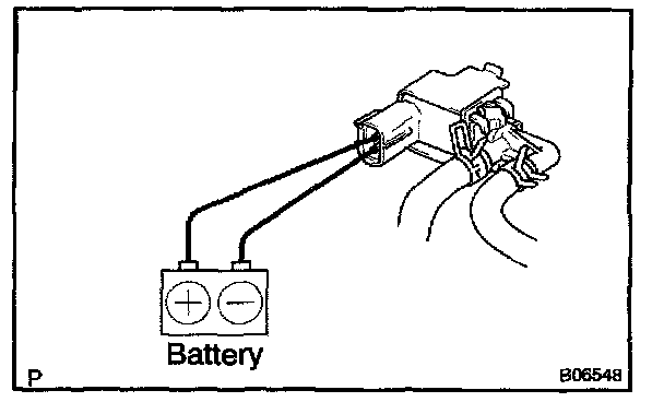 2. Connect the positive (+) and negative (-) leads from the battery to the VSV terminals for the EVAP.