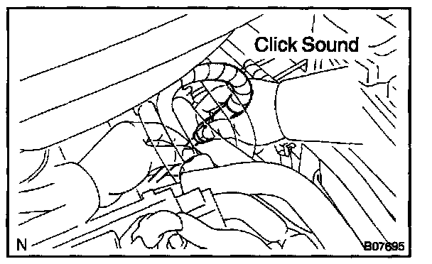 4. Match the axis of the connector with axis of the pipe, and push in the connector until retainer makes a "click" sound. In case that the connections is tight, apply little amount of new engine oil on the tip of the pipe.