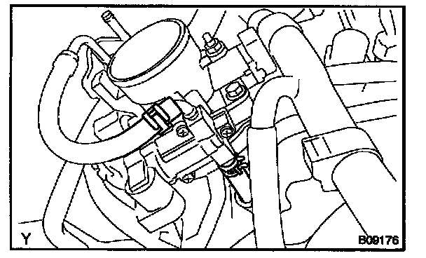b. Install the throttle body with the 2 bolts and 2 nuts.