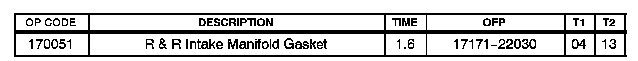 Following a cold soak in subfreezing ambient temperatures, some 2000 - 2005 model year Celica vehicles equipped with a 1ZZ-FE engine may exhibit a M.I.L. "ON" with one or more of the following Diagnostic Trouble Codes (DTCs) as the result of a vacuum leak at the intake manifold.