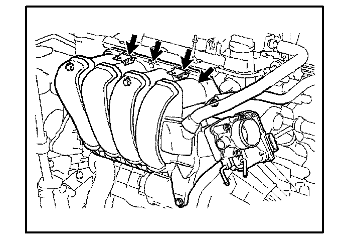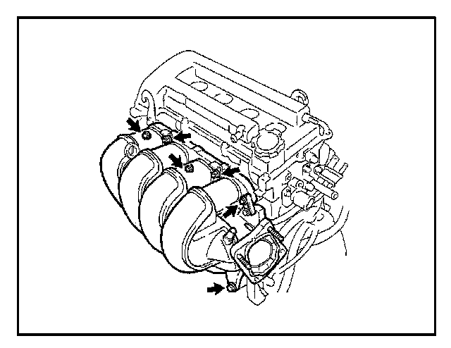 2. Following conventional diagnostic procedure, confirm if there is a leak where the intake manifold and cylinder head meet between each intake runner.