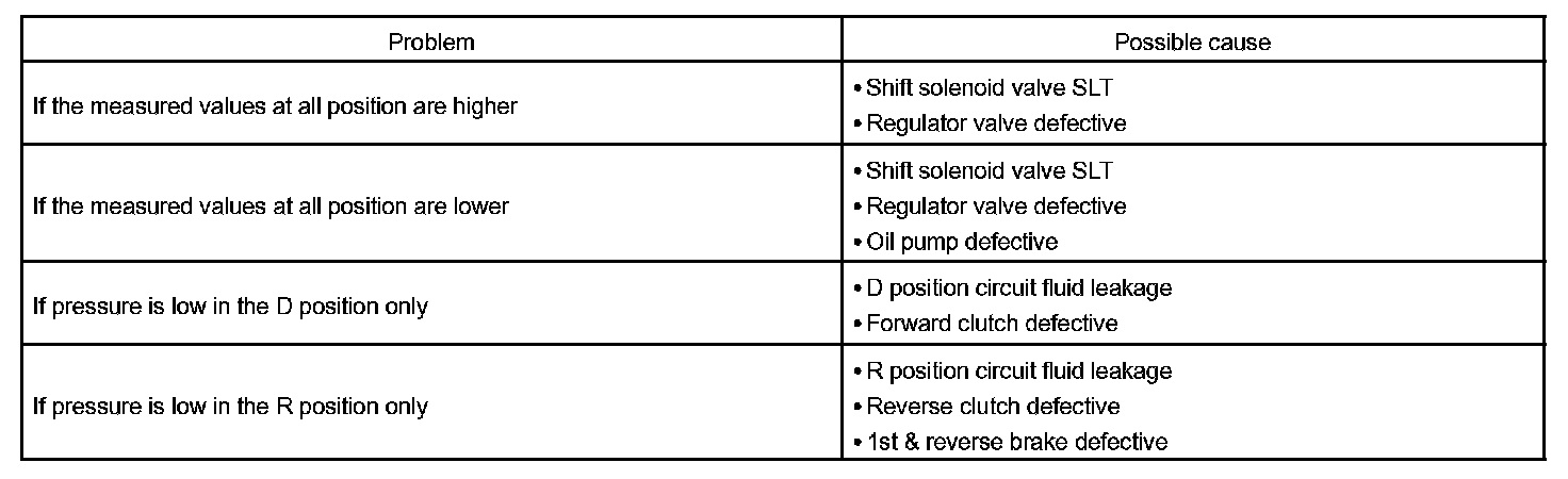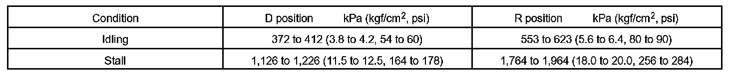 8. Depress the accelerator pedal all the way down. Quickly read the highest line pressure when engine speed reaches stall speed.
