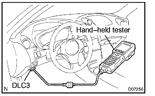 2. Connect the OBD II scan tool or hand-held tester to DLC3 at the lower of the instrument panel.