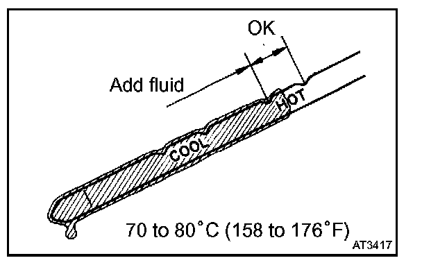 - Drive the vehicle so that the engine and transaxle are at normal operating temperature. Fluid temp.: 70 to 80 °C (158 to 176 °F)