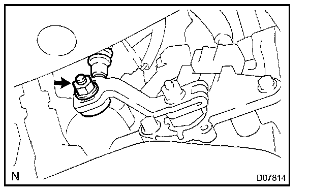 5. While holding the shift lever lightly toward the R position side, tighten the shift lever nut.