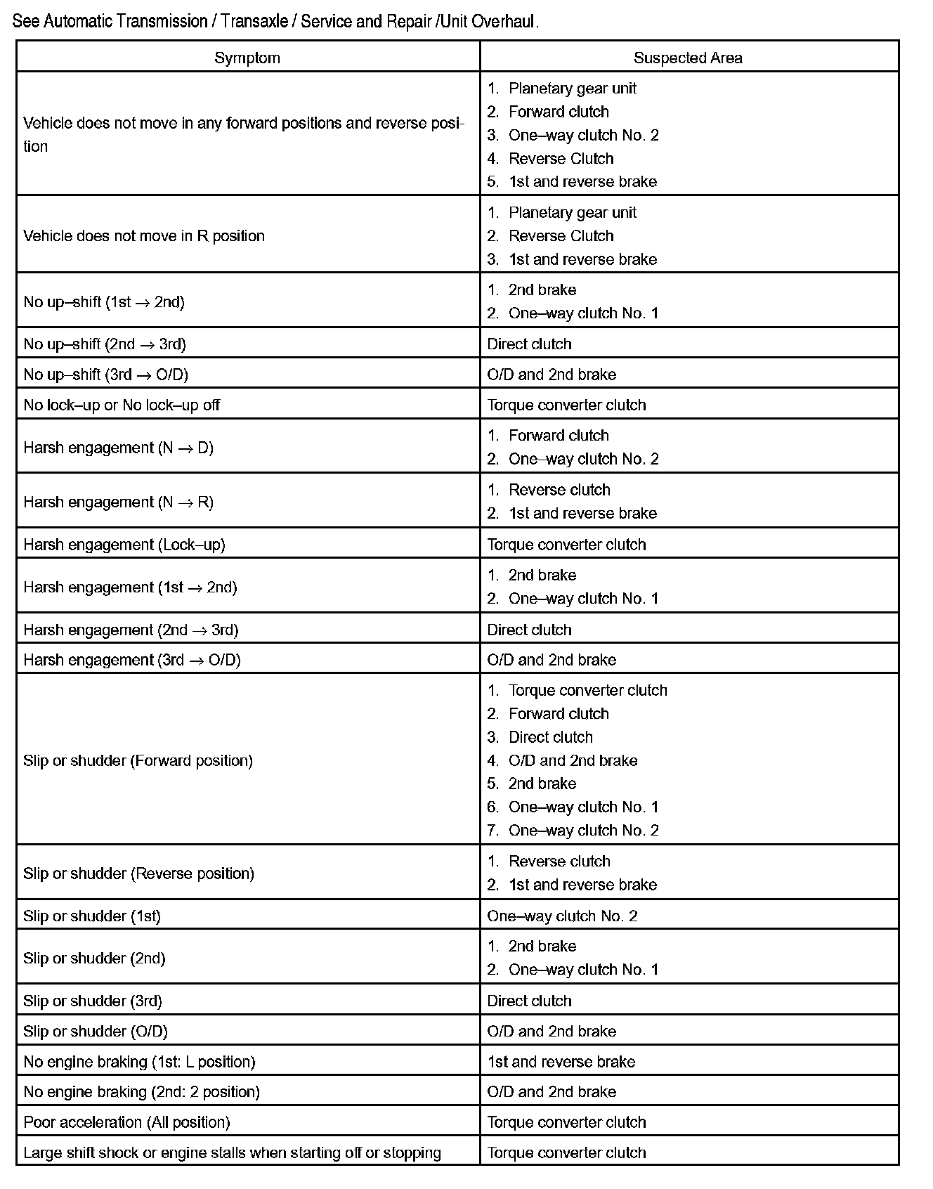 PROBLEM SYMPTOMS TABLEIf a normal code is displayed during the DTC check but the trouble still occurs, check the circuits for each symptom in the order given in the charts and proceed troubleshooting.