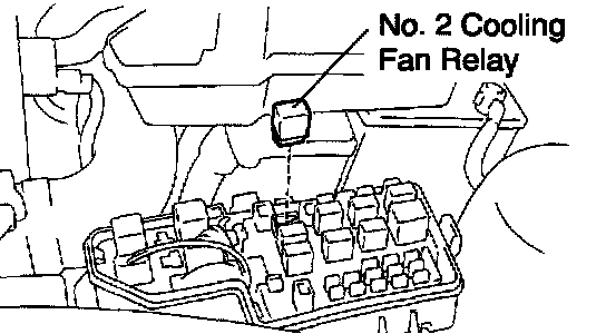 b. Remove the No. 2 cooling fan relay. (Marking: FAN No. 2)