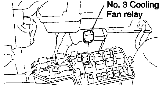 b. Remove the No. 3 cooling fan relay. (Marking: FAN No. 3)