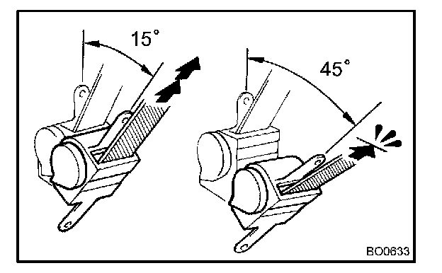 d. Make sure that the belt can be pulled out at a tilt of 15 degrees or less, and cannot be pulled out over 45 degrees of tilt.