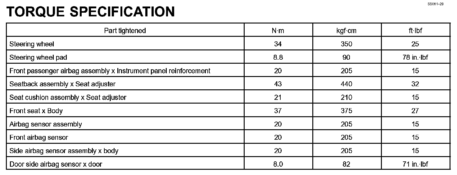 Supplemental Restraint System - Torque Specification: