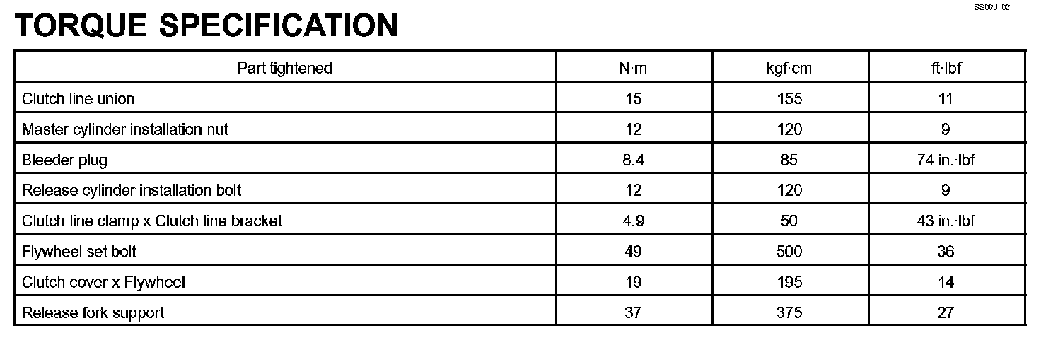 Clutch - Torque Specification: