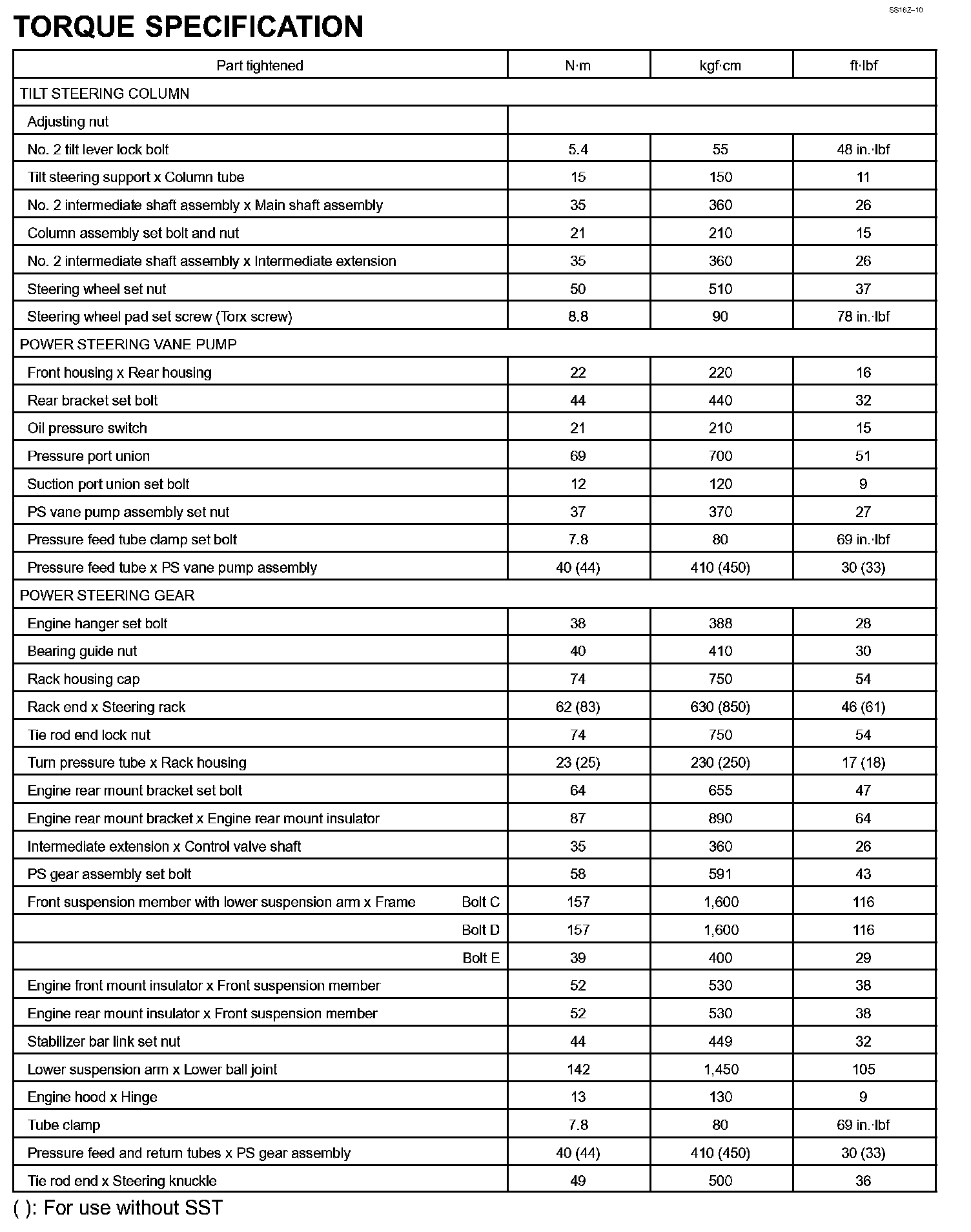 Steering - Torque Specification: