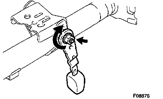 c. Install the adjusting nut by rotating it counterclockwise in the specified torque so that the locking load (load applied to when a knob is operated) of the tilt lever will be 38 - 82 N (3.9 - 8.4 kgf, 8.5 - 18.4 lbs.).