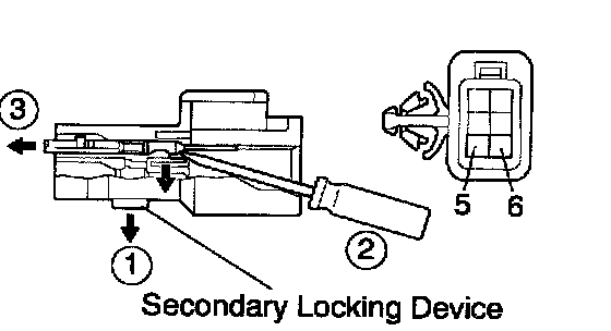 c. Release the locking log of the terminals 5 and 6, and pull the terminals out from the rearward.