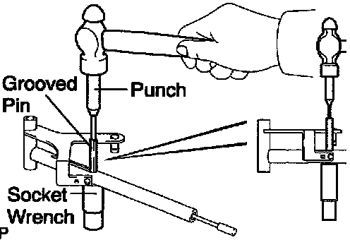 Using a screwdriver and hammer, drive off the shaft control while disengaging the claw of the shaft control and remove the shift lever sub-assembly.