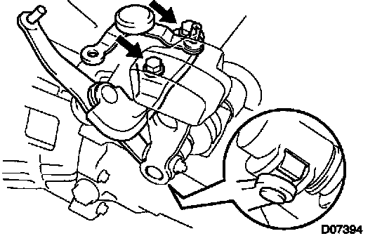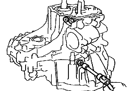 To avoid the interference of the 2 balls, lift up the No. 3 gear shift fork shaft at the position shown in the illustration.
