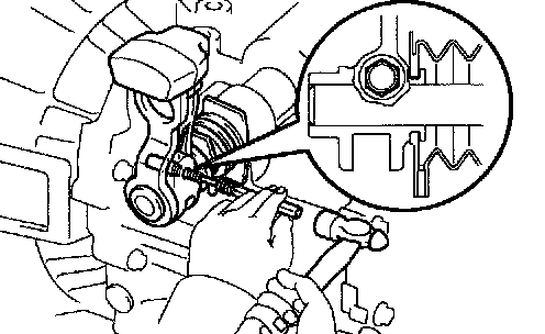 ^ Set the pin on the top of the reverse shift arm into a groove on the reverse idler gear.
