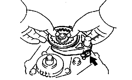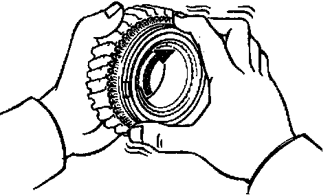 b. Check the braking effect of the synchronizer ring. Turn the synchronizer ring in one direction while pushing it to the gear cone. Check that the ring locks.