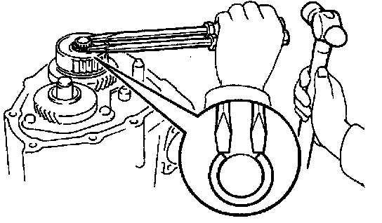 b. Using a chisel and hammer, loosen the staked part of the nut.