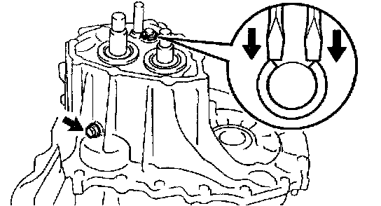 ^ Fit the claw of the reverse shift arm bracket with the notch of the input shaft front bearing.
