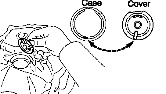 NOTICE: Install the output shaft cover projection into the case side hollow.