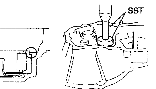 ^ Install the oil receiver pipes while placing it against the transmission case, as shown in the illustration.