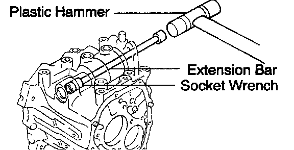 a. Using a socket wrench (12 mm), extension bar and plastic hammer, drive out the bushing.