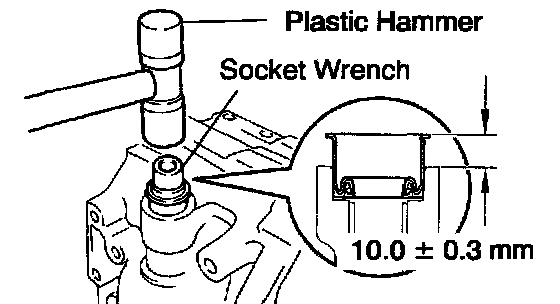 b. Using a socket wrench (17 mm) and plastic hammer, drive in a new oil seal.