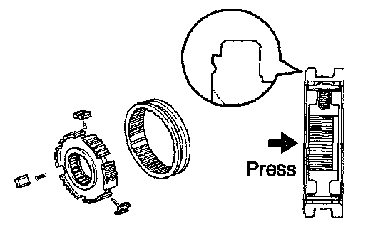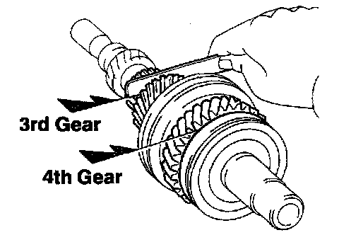 d. Using a feeler gauge, measure the clearance between the synchronizer ring back and gear spline end.