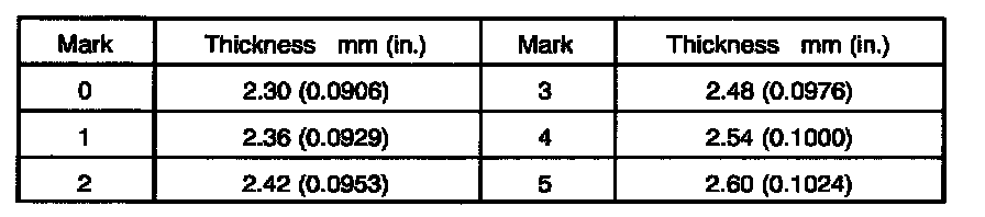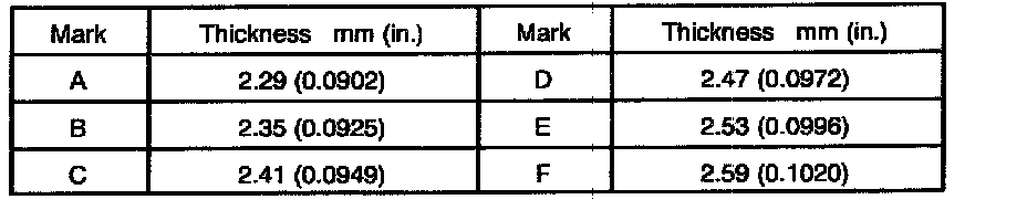a. Select a snap ring from the table that will make the thrust clearance of the rear radial ball bearing less than 0.1 mm (0.0039 inch).