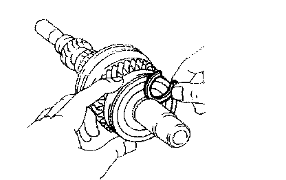 If the braking effect is insufficient, apply a small amount of the fine lapping compound between the synchronizer ring and gear cone. Lightly rub the synchronizer ring and gear cone together.