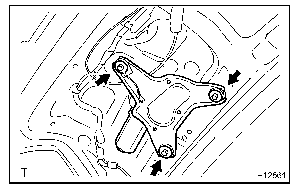 b. Unfasten the 3 bolts and remove the rear wiper motor.
