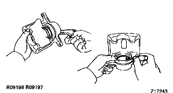 Using a screwdriver, remove the set ring and cylinder boot from the caliper.